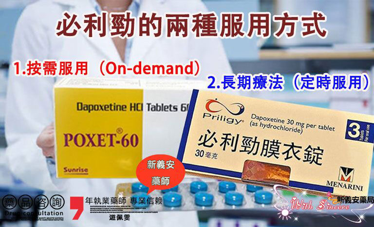 必利勁有兩種主要的用法,分別是「依需用法」和「長期療法」。依需用法指的是在有性生活需求時才使用藥物,這種用法可以在短時間內有效控制早洩症狀,但僅限於症狀控制,無法達到改善或治療的作用。因此若患者希望長期改善早洩,則需要採取另一種治療策略。