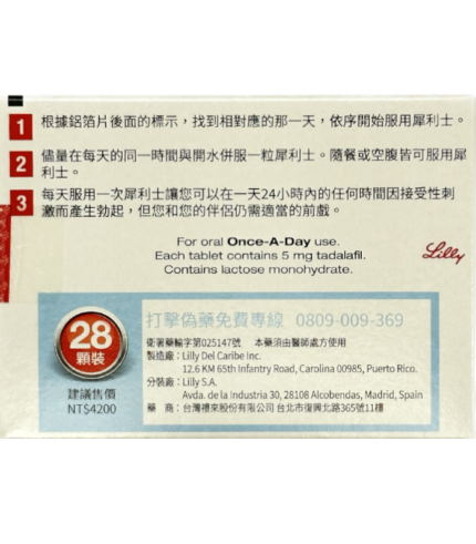 犀利士膜衣錠5mg 每日錠 Cialis 5mg丨治療勃起功能障礙丨保養攝護腺