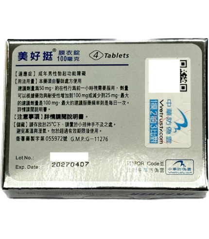 美好挺100mg(Okpower)是由臺灣南光製藥生產的男性壯陽助勃藥物,成分為西地那非(Sildenafil)。透過有效舒張陰莖海綿體平滑肌,促進血液流入,使陰莖快速勃起,改善男性勃起功能障礙(ED),提升性生活滿意度與自信。