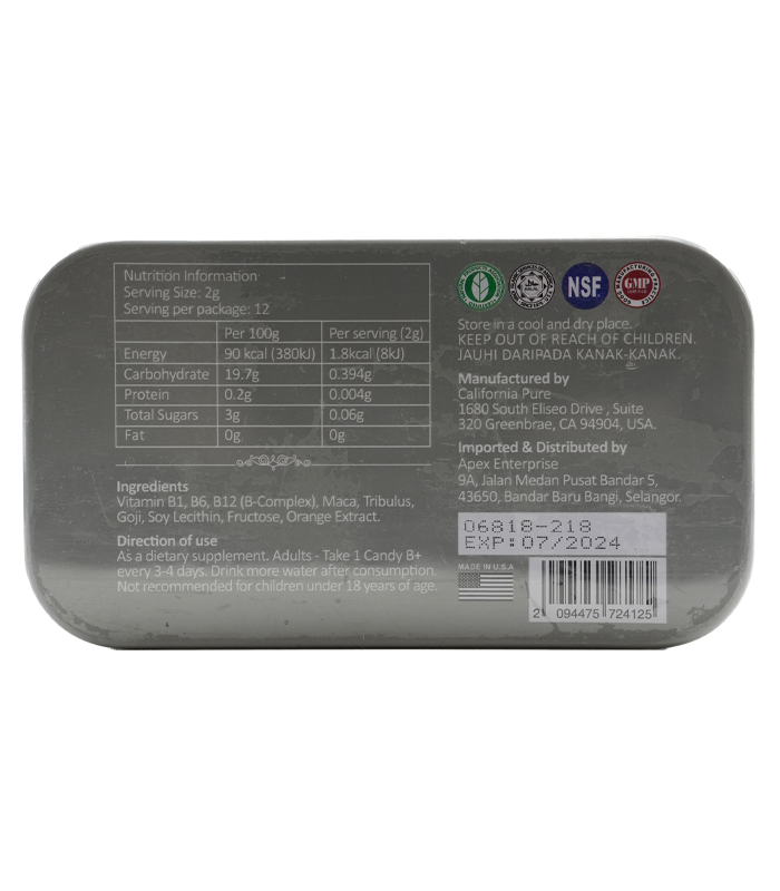 來自美國製造、馬來西亞熱銷的【永春糖 Candy B+ Complex】,是一款專為男性打造的高效能保健糖果,採用天然草本配方,有助於提升男性體力、壯陽補腎、延時助勃,是男性保健不可或缺的秘密武器。