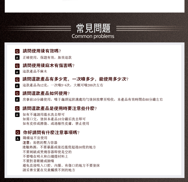 無味無麻,不影響口交:噴塗後無異味,也不會造成麻木感,使用方便,保證隱私安全。