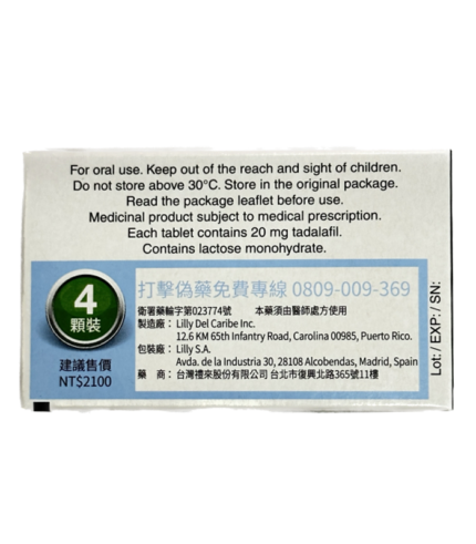 | 使用方法 | 行房前約 30 分鐘空腹服用,可用水送服,勿與酒精共用 |