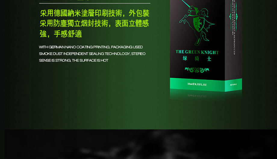法國綠騎士持久液,精選天然植物精華,吸收迅速,效果強勁。輕輕一噴,即刻激發性欲,延長愛的時光,讓彼此更長久地享受甜蜜,重拾男人雄風。