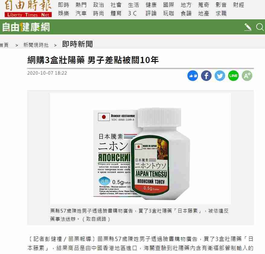 | 藤本日本 | 赤根草浸膏、雄鹿鞭浸膏、澱粉等 | 男性功能障礙、腎虛、體弱缺少精力、房事易疲勞者、時間極短者 | 全球多家臨床認證,有效率達到98%。 | 純植物完全沒有任何副作用,適合20到60歲年齡之間使用。 |