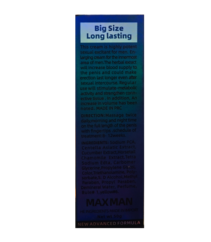MAXMAN GEL的草本配方有助於增加陰莖的血液循環,持續使用能改善勃起硬度,並有效延長性交時間。產品無副作用,不會產生依賴性,並能預防陽痿和早洩問題。