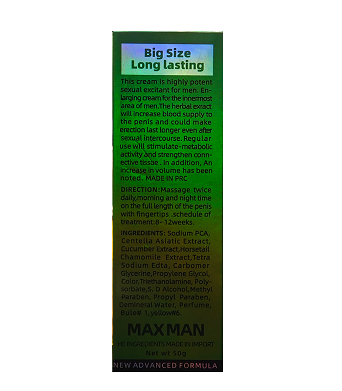 MAXMAN GEL的草本配方有助於增加陰莖的血液循環,持續使用能改善勃起硬度,並有效延長性交時間。產品無副作用,不會產生依賴性,並能預防陽痿和早洩問題。