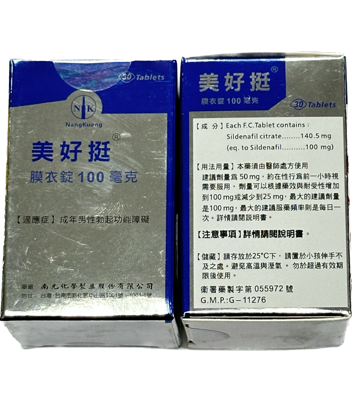 美好挺膜衣錠100mg(Okpower F.C. Tablets)由臺灣知名的南光化學製藥股份有限公司生產,是專為男性設計的治療勃起功能障礙(ED)的有效藥物。美好挺以西地那非(Sildenafil)為主要成分,透過提升局部血流,有效增強男性勃起硬度、持久度,深受廣大男性消費者和醫師推薦。
