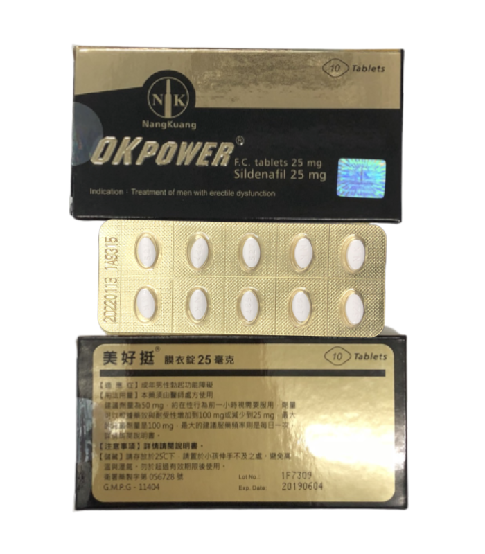 - 貨品名稱:美好挺25mg / Okpower F.C. Tablets 25mg