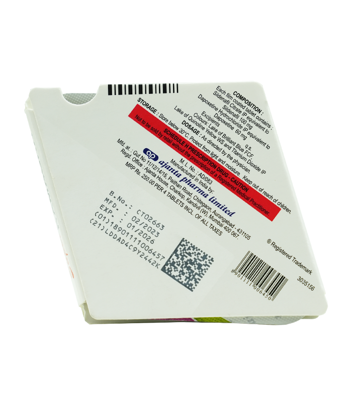• 藥品規格:西地那非100mg + 達泊西汀60mg(每袋)